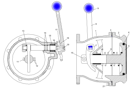 Адаптер API 4” 98.00.04/E с рукояткой и глазком является запорной арматурой отсеков цистерны и обеспечивает нижний налив и слив топлива без его пролива (клапан открывается и закрывается только при присоединенной ответной арматуре с трубопроводами). Клапан монтируется на конец трубопровода из отсека цистерны, который находиться в технологическом шкафу.