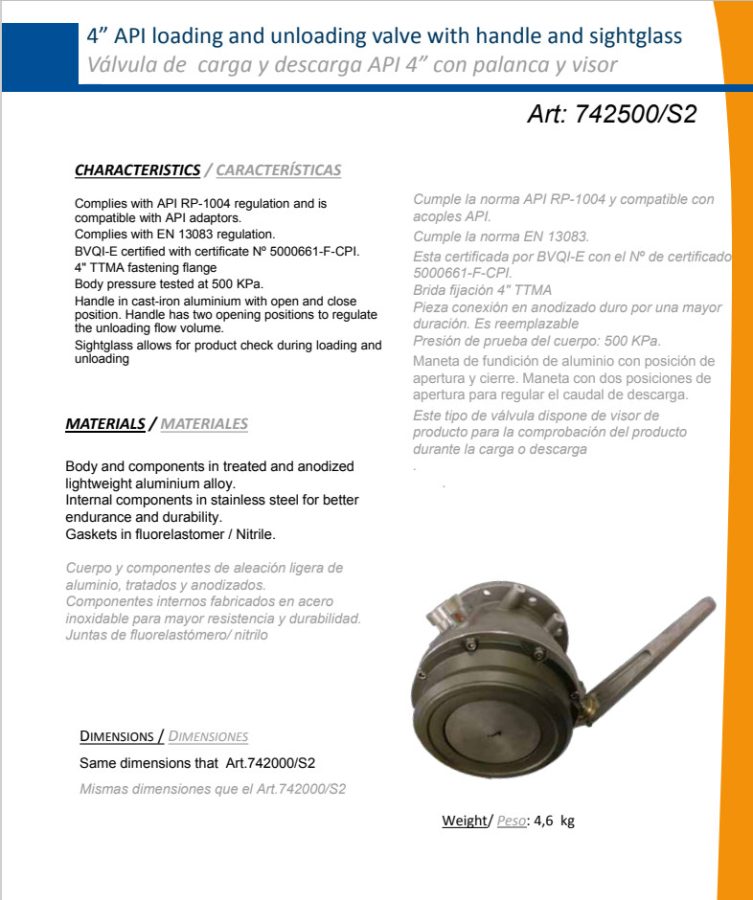 Соответствует стандарту API RP-1004 и совместим с адаптерами API.