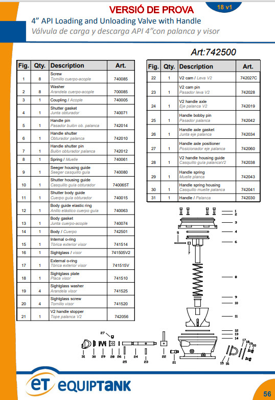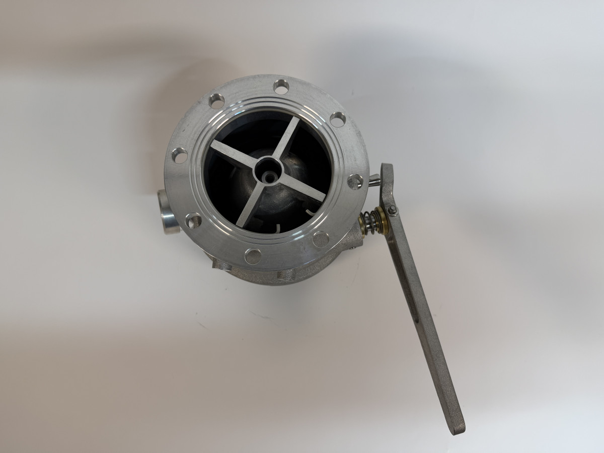 Рукоятка из чугуна с алюминиевой основой с открытым и закрытым положениями. Ручка имеет два положения открытия для регулирования объёма разгрузки.