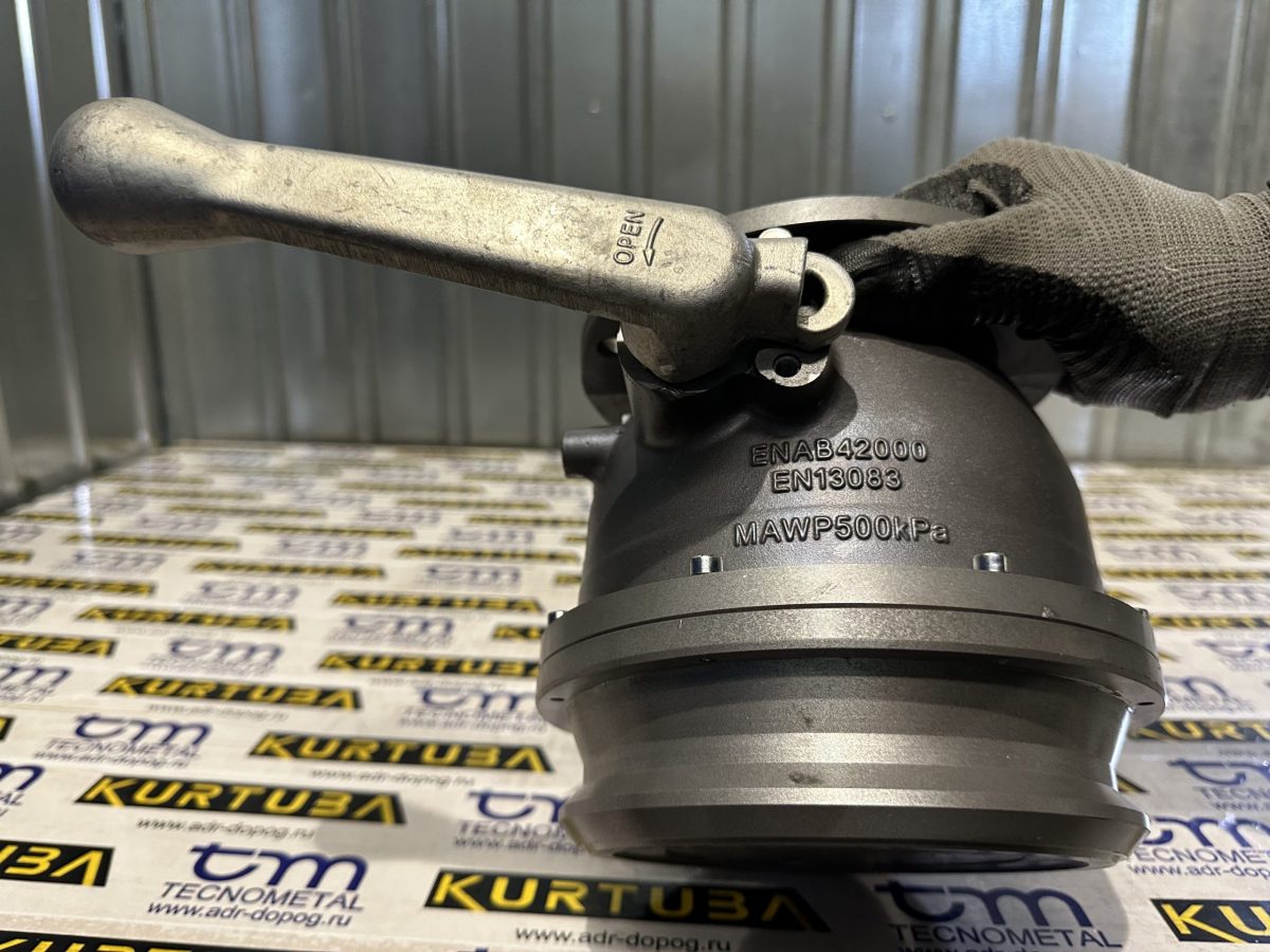 Адаптер API 4” 98.00.04/E с рукояткой и глазком является запорной арматурой отсеков цистерны и обеспечивает нижний налив и слив топлива без его пролива (клапан открывается и закрывается только при присоединенной ответной арматуре с трубопроводами). Клапан монтируется на конец трубопровода из отсека цистерны, который находиться в технологическом шкафу.