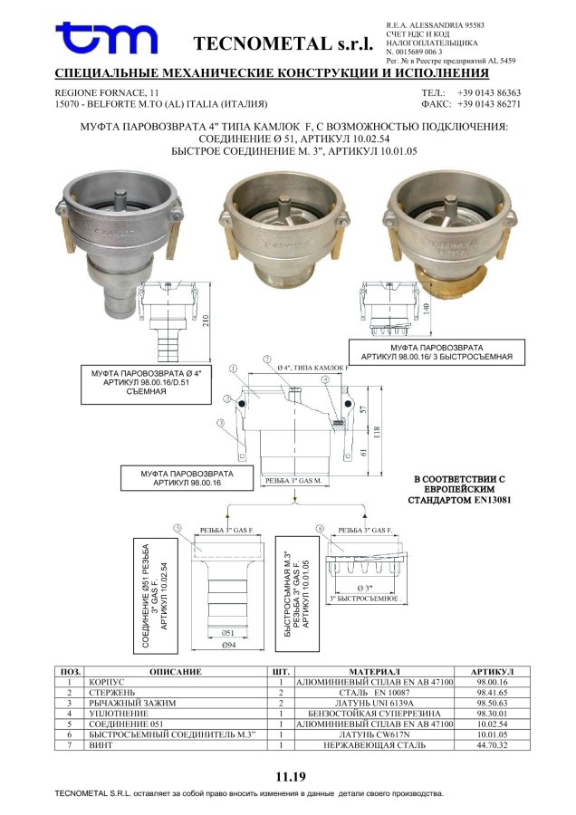 муфта пароотвода 4” Kamlok F, артикул: 98.00.16