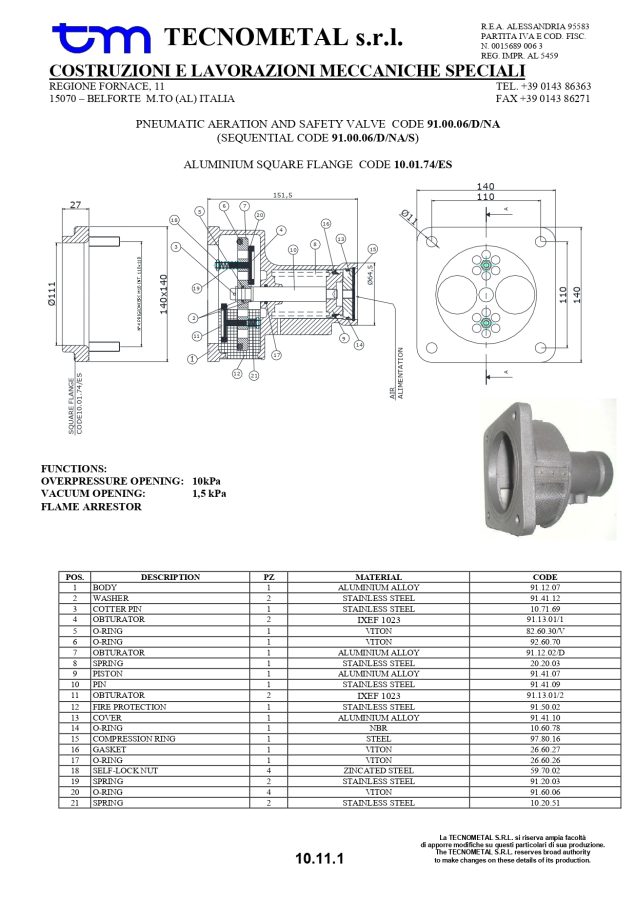 Клапан рекуперации и дыхательный, артикул: 91.00.06/D/NA