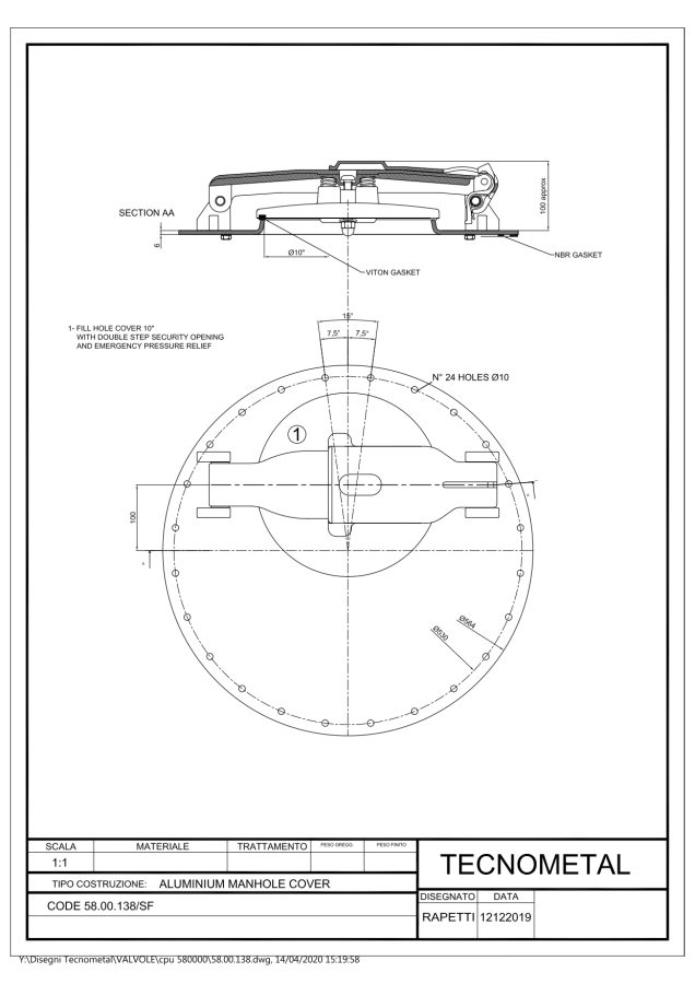 58.00.138 SF Крышка инспекционного люка. EN 13314, ADR сертификат BUREAU VERITAS G7071/19/RP № BV 7266965. EN 13317, ADR сертификат BUREAU VERITAS G4360/18/RP № BV 7218353. EN 14596, ADR сертификат BUREAU VERITAS G7075/19/RP № BV 7266965.