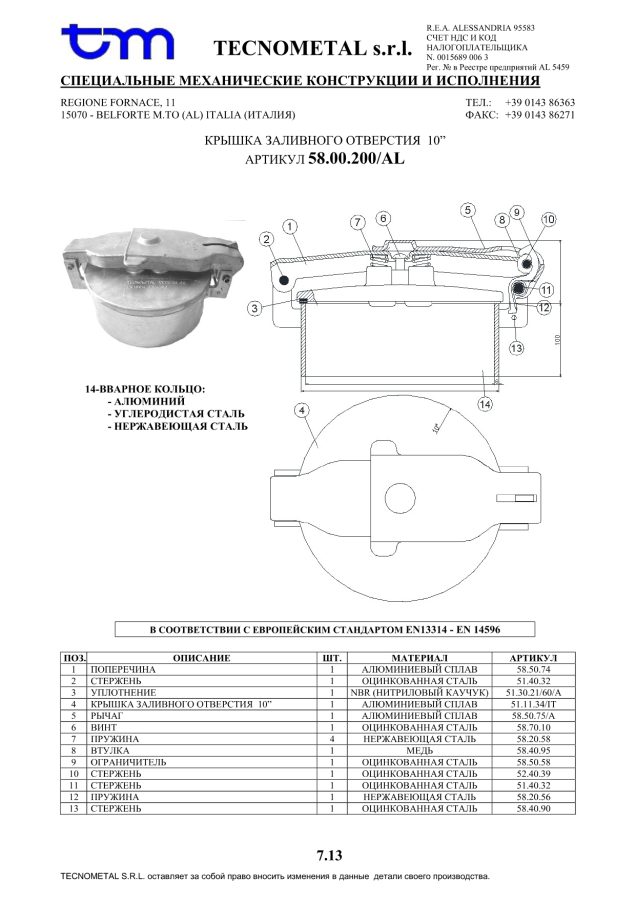 Крышка заливной горловины 10", артикул: 58.00.200/AL/910005