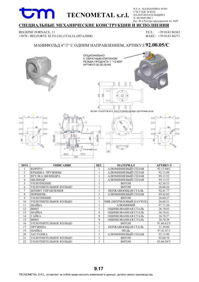 Tecnometal S.r.L — итальянская компания, специализируется на производстве оборудования для цистерн для транспортировки светлых нефтепродуктов в соответствии с ADR (класс 3 по ADR — бензин, дизельное топливо).