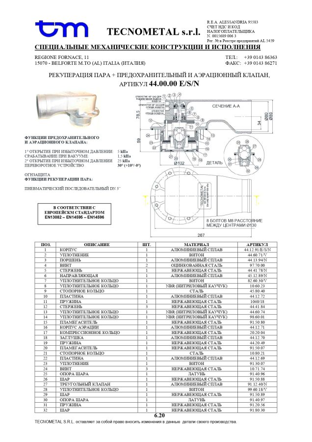 Пароотвод + предохранительный дыхательный клапан, артикул: 44.00.00 E/S/N