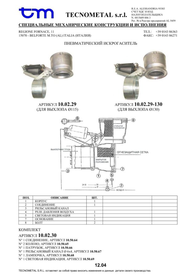 Пневматический искрогаситель для выхлопа D=115, артикул: 10.02.29