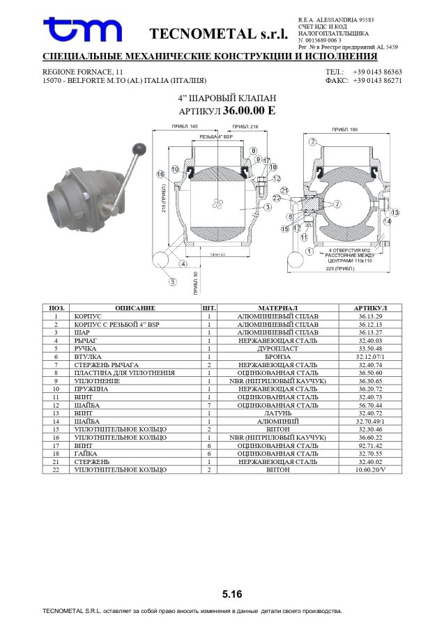 | 2 | Выход 4” резьба bsp | 1 | Алюминиевый сплав | 36.12.13 |