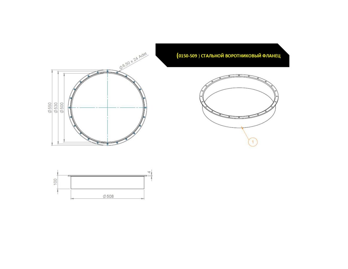 Стальное вварное кольцо под крышку инспекционного люка 500мм, артикул: 0150-509